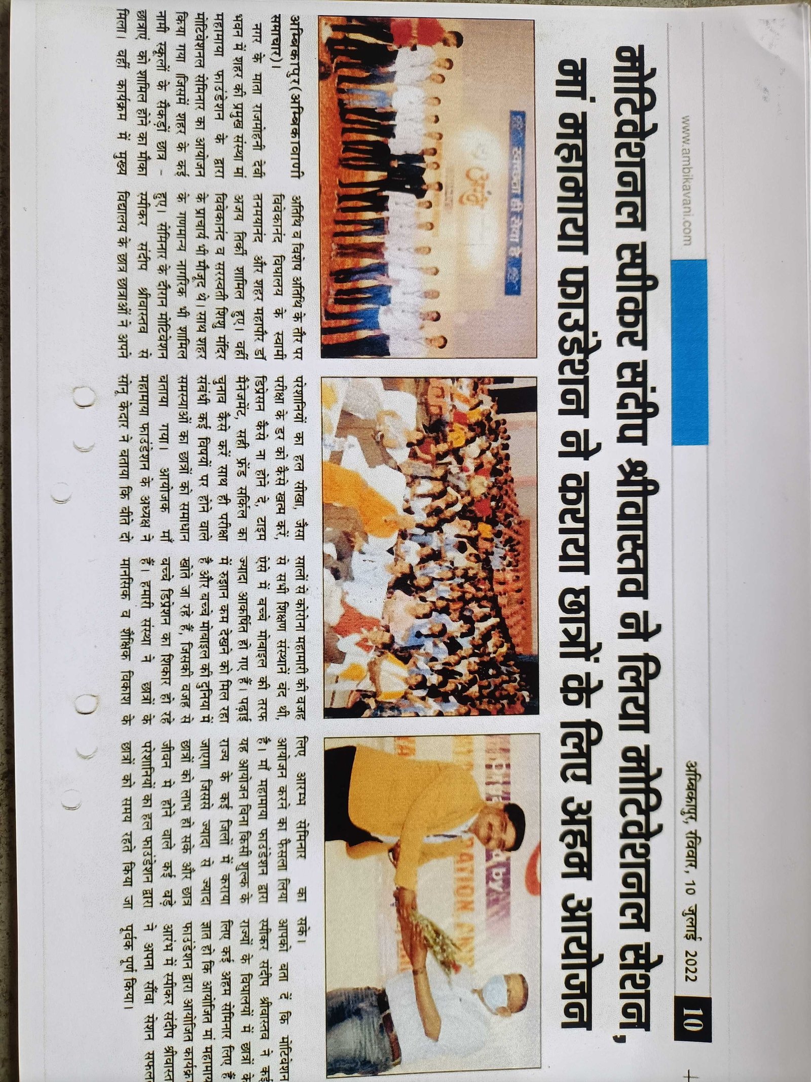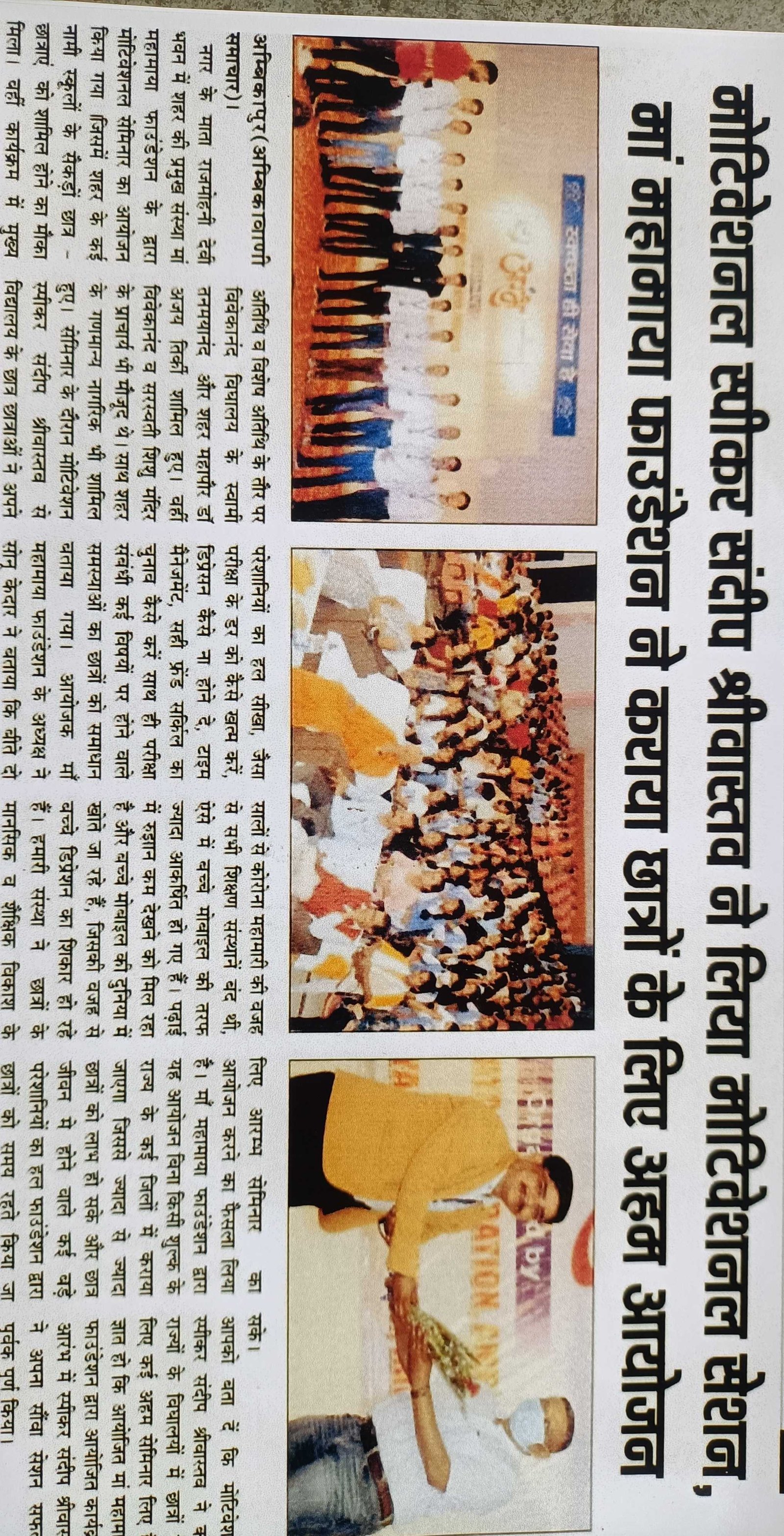 बनारस के प्रतिष्ठित विद्यालय महाबोधि इंटर कॉलेज में मुरली मित्र वेलफेयर फाउंडेशन ने कराया छात्रों के लिए मोटिवेशनल सत्र